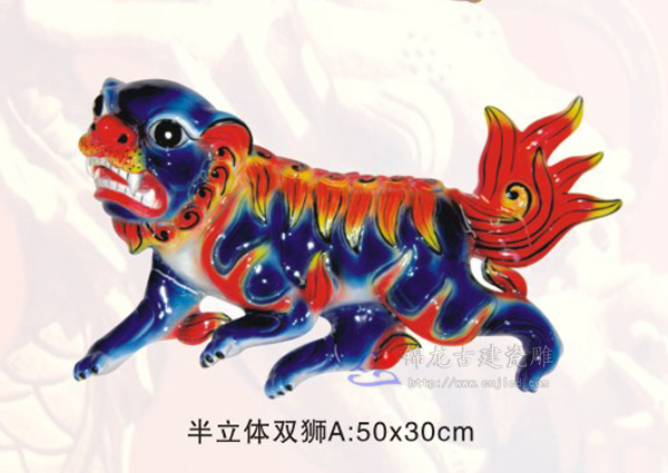 半立体双狮/锦龙陶瓷有限公司,德化古建陶瓷,园林古建筑,琉璃瓦,白瓷瓦片