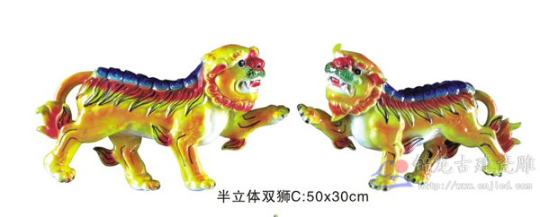 半立体双狮/锦龙陶瓷有限公司,德化古建陶瓷,园林古建筑,琉璃瓦,白瓷瓦片