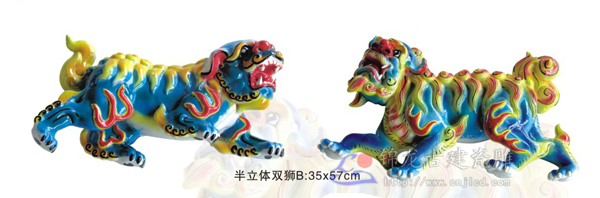 半立体双狮子/锦龙陶瓷有限公司,德化古建陶瓷,园林古建筑,琉璃瓦,白瓷瓦片