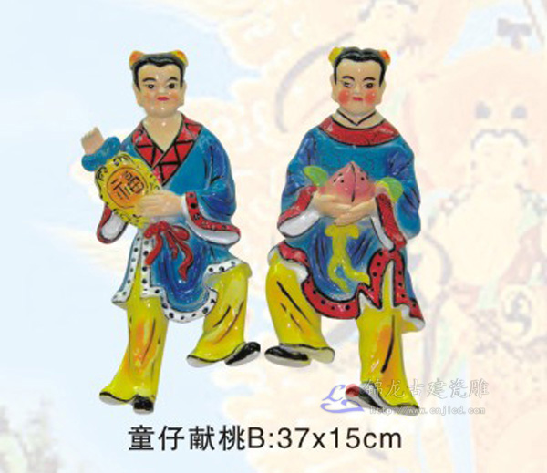 童仔献桃/锦龙陶瓷有限公司,德化古建陶瓷,园林古建筑,琉璃瓦,白瓷瓦片