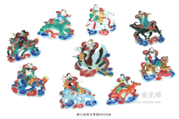 新八仙带云带骑/锦龙陶瓷有限公司,德化古建陶瓷,园林古建筑,琉璃瓦,白瓷瓦片